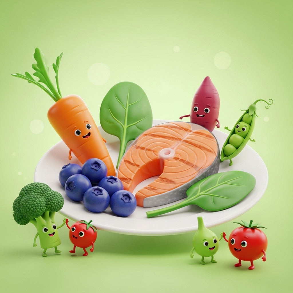 비타민 A, C, E와 루테인, 오메가-3 지방산이 풍부한 식품을 섭취하면 눈 건강을 지키는 데 좋습니다. 당근, 블루베리, 연어 등을 꾸준히 드셔보세요.