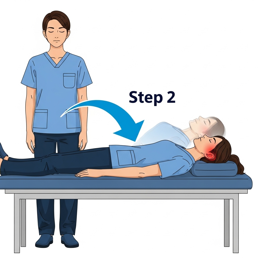 뇌가 이석 움직임에 적응하도록 훈련시켜 재발 방지에 도움을 줍니다. (자세한 순서는 그림을 참고해 주세요.)