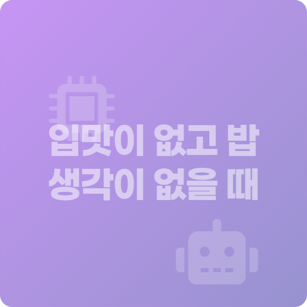 오늘은 입맛이 없을 때 우리 몸이 보내는 신호에 대해 알아봤어요. 밥 생각이 없을 때 무작정 넘기기보다는, 내 몸과 마음의 상태를 한번 돌아보는 계기가 되셨으면 좋겠습니다. 건강은 작은 관심에서부터 시작되니까요. 더 궁금한 점이 있다면 댓글로 남겨주세요~ 😊