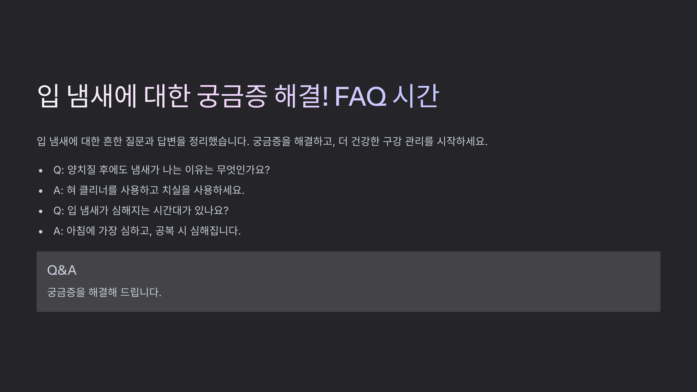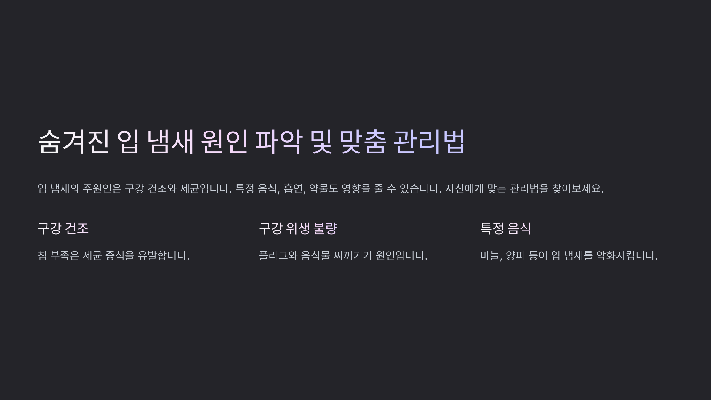 💡 입 냄새 제거는 **원인을 파악**해 **근본적인 해결**이 중요해요. 🪥✨