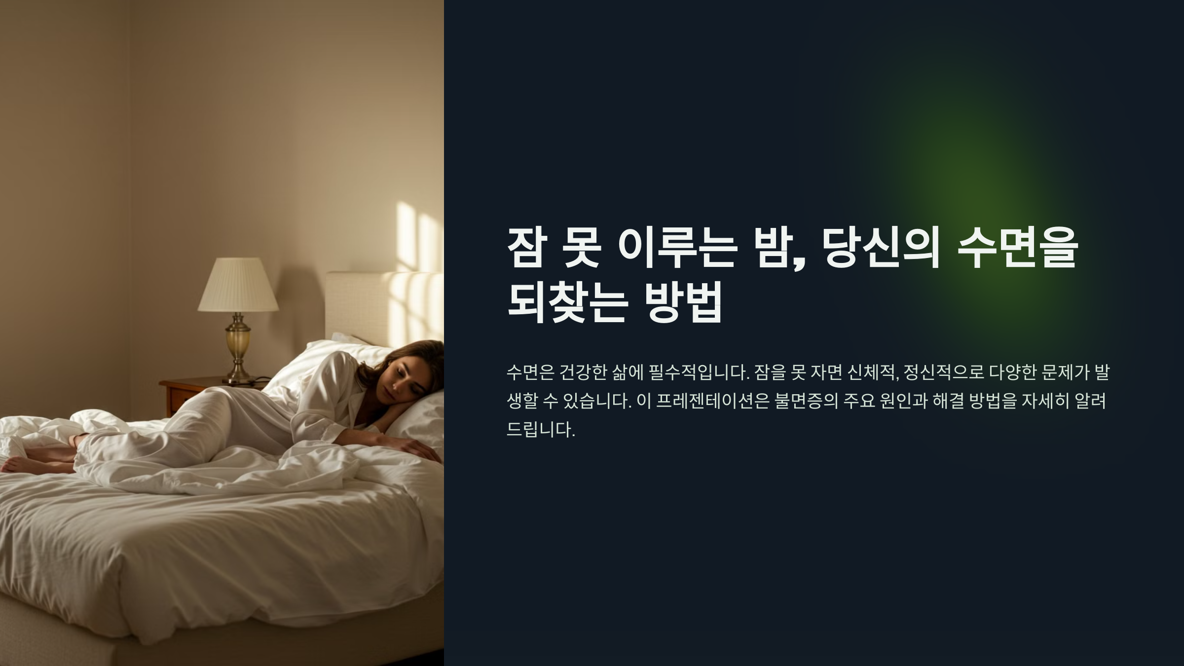 - 📌 스트레스: 걱정거리나 업무 압박이 많으면 쉽게 잠들기 어려워요.
