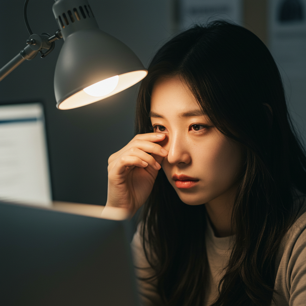 화면에서 나오는 블루라이트는 망막에 부담을 주고, 눈 깜박임 횟수를 줄이게 만들어요. 눈이 건조해지고 이물감이나 통증이 동반될 수 있어요. 눈물층이 불안정해지면 더 자주 피로감을 느끼게 돼요.