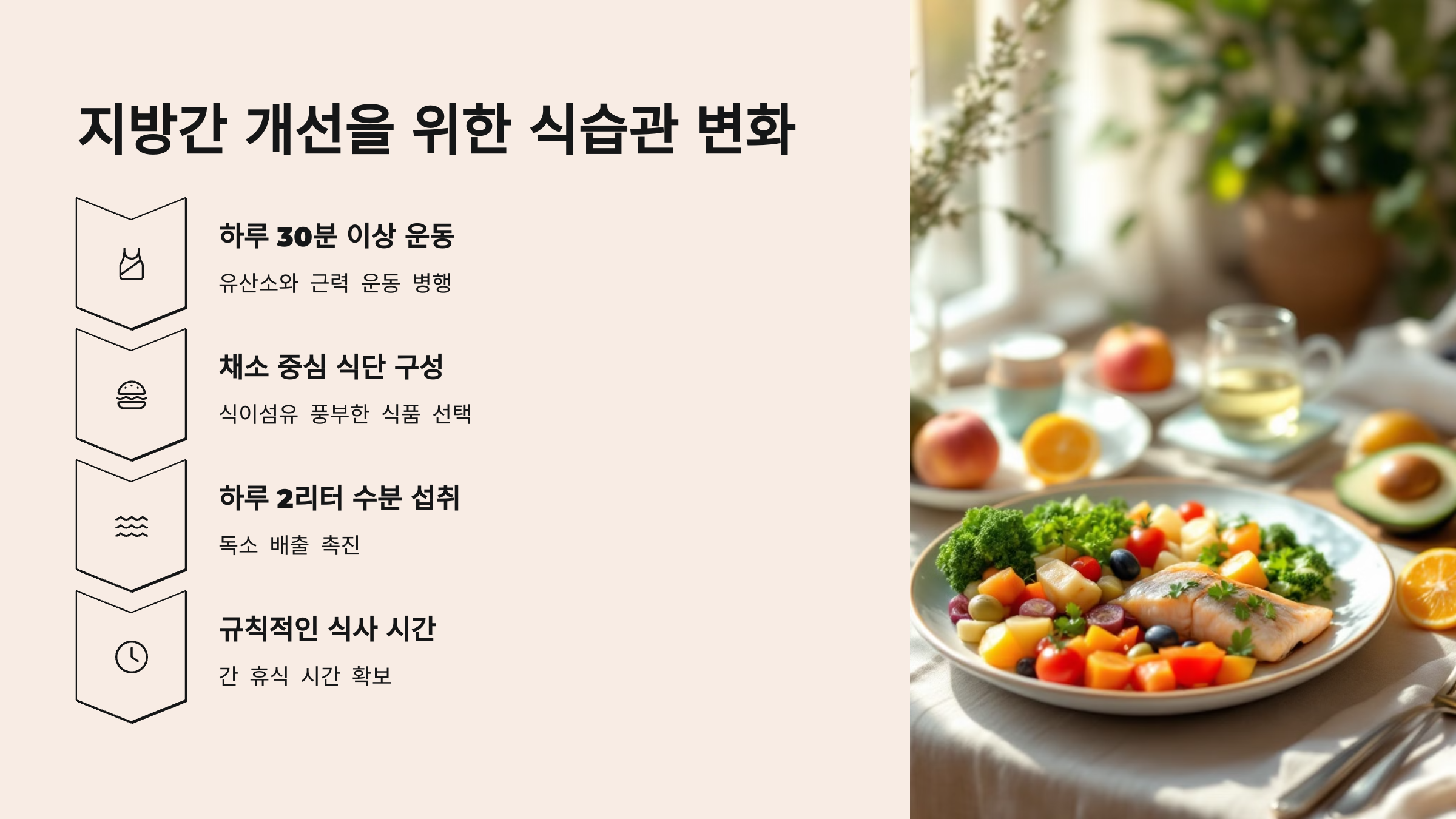 지방간을 개선하려면 체중 감량만으로는 부족하고, 간에 직접 부담을 줄이는 식습관으로 바꿔야 해요. 아래의 방법들을 실천해보세요.