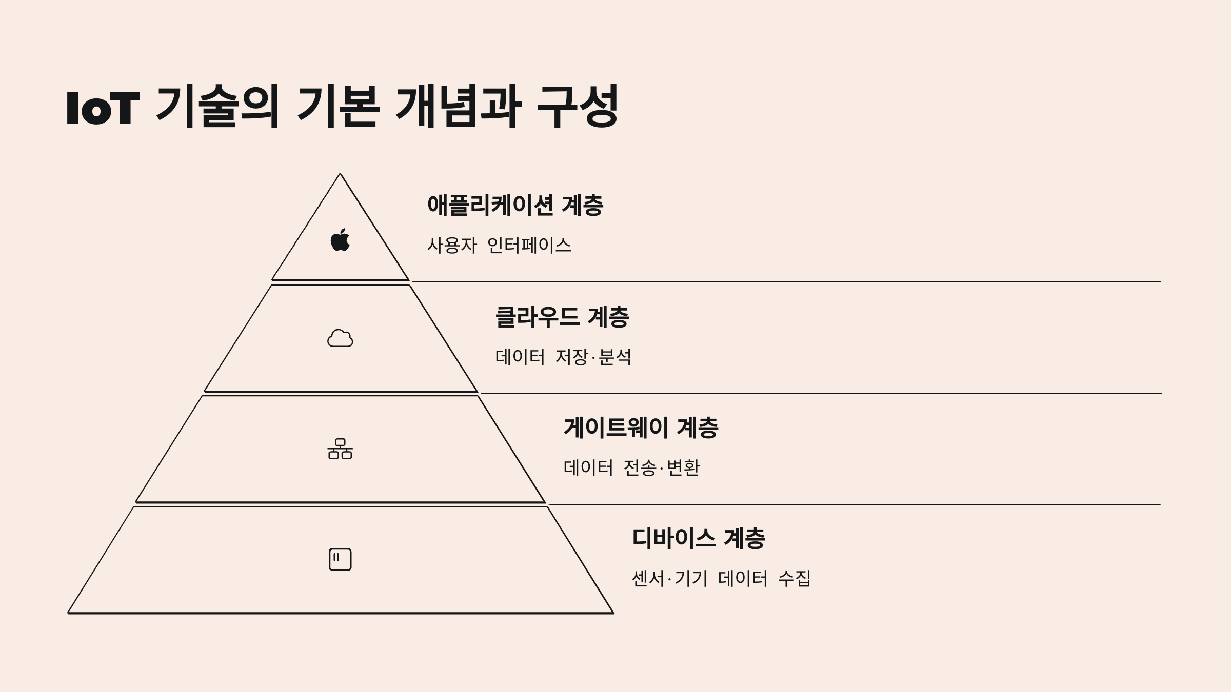 IoT는 크게 세 부분으로 구성돼요: