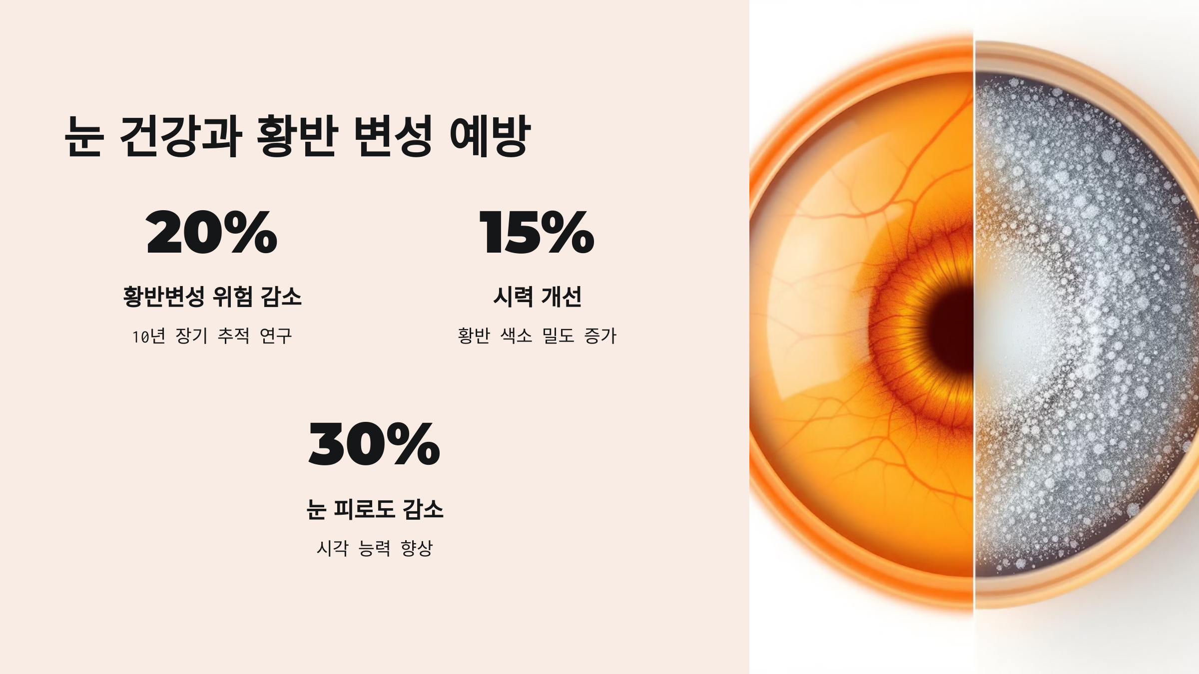 | 황반 보호 | 눈의 중심부를 보호하여 시력 저하 예방 |