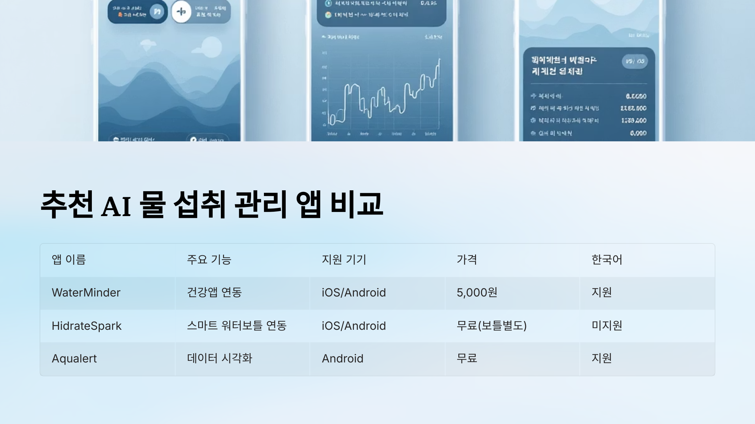 📊 추천 AI 물 섭취 관리 앱 비교표