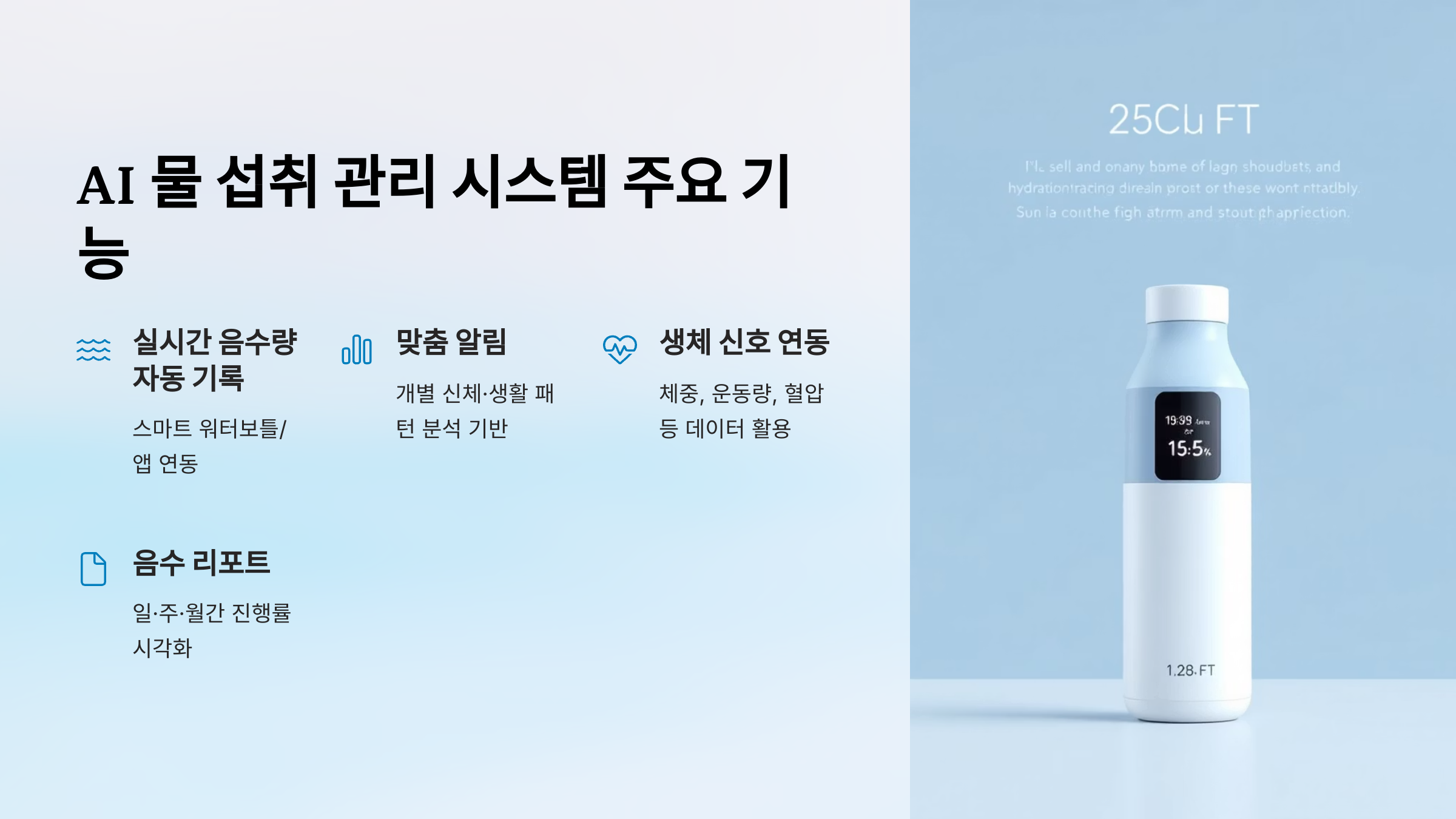 하루를 건강하게 보내고 싶다면, AI 물 섭취 관리 시스템은 정말 필수템이라고 생각해요. 🚰💪