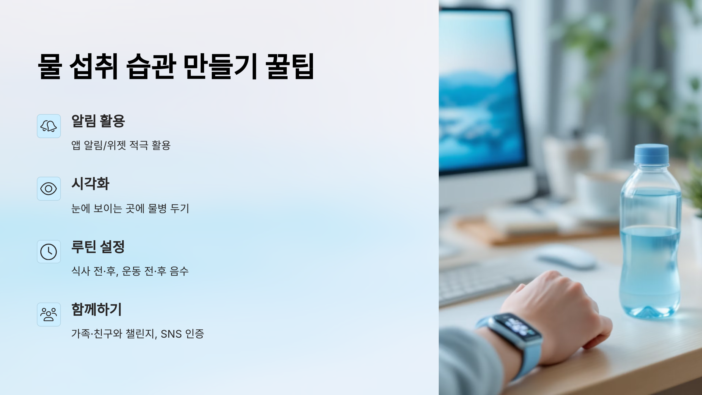 오늘은 AI가 직접 물 섭취량을 관리해주는 시스템과 추천 앱들을 소개할게요. 나도 모르게 건강해지는 습관, 지금부터 함께 시작해봐요! 🚰✨