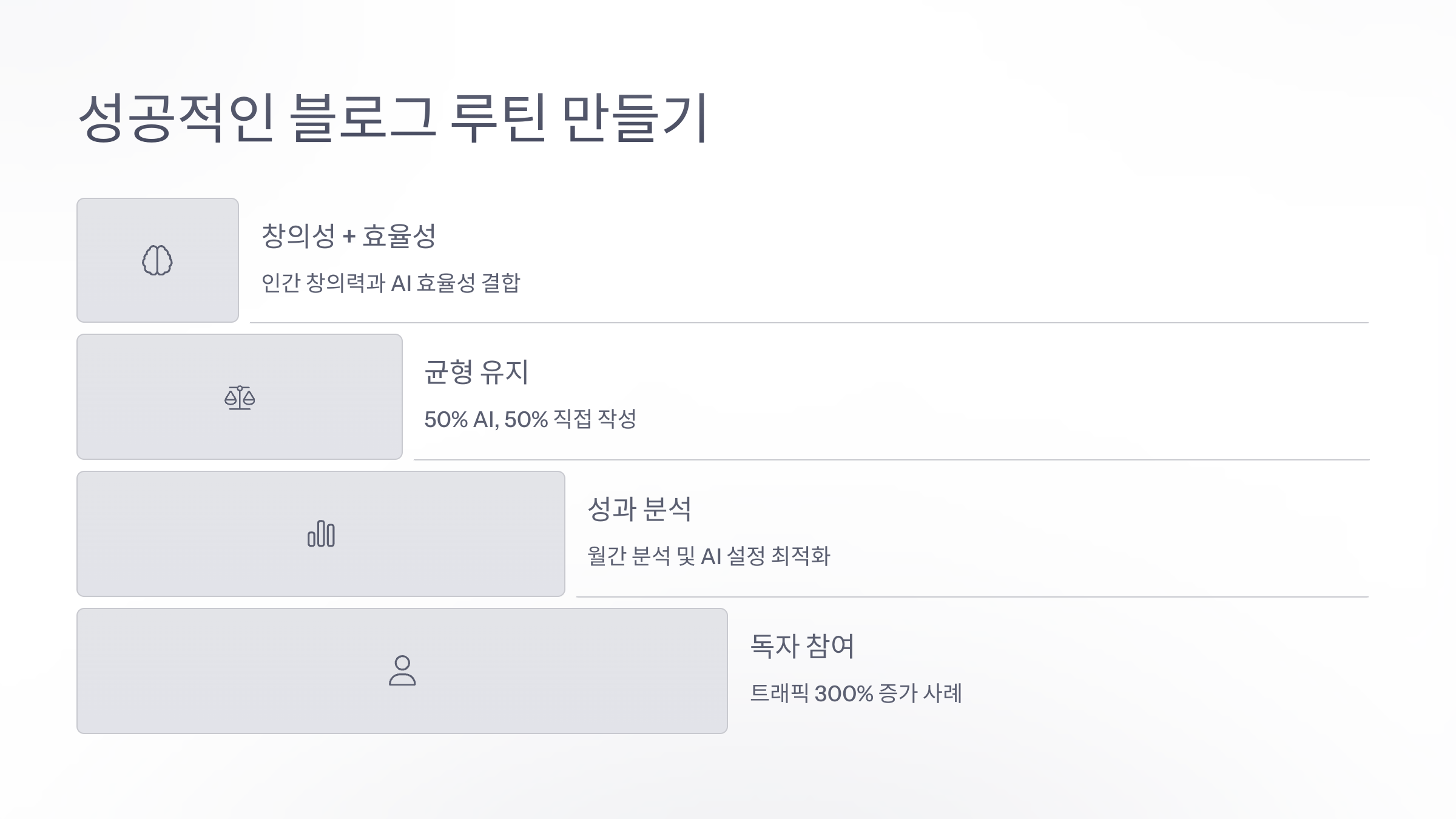 AI로 블로그 루틴을 만들려면 일단 고정 주제와 글 작성 패턴을 정리하는 게 첫 단계에요. 매번 새롭게 고민하는 시간을 줄이는 게 중요하거든요.