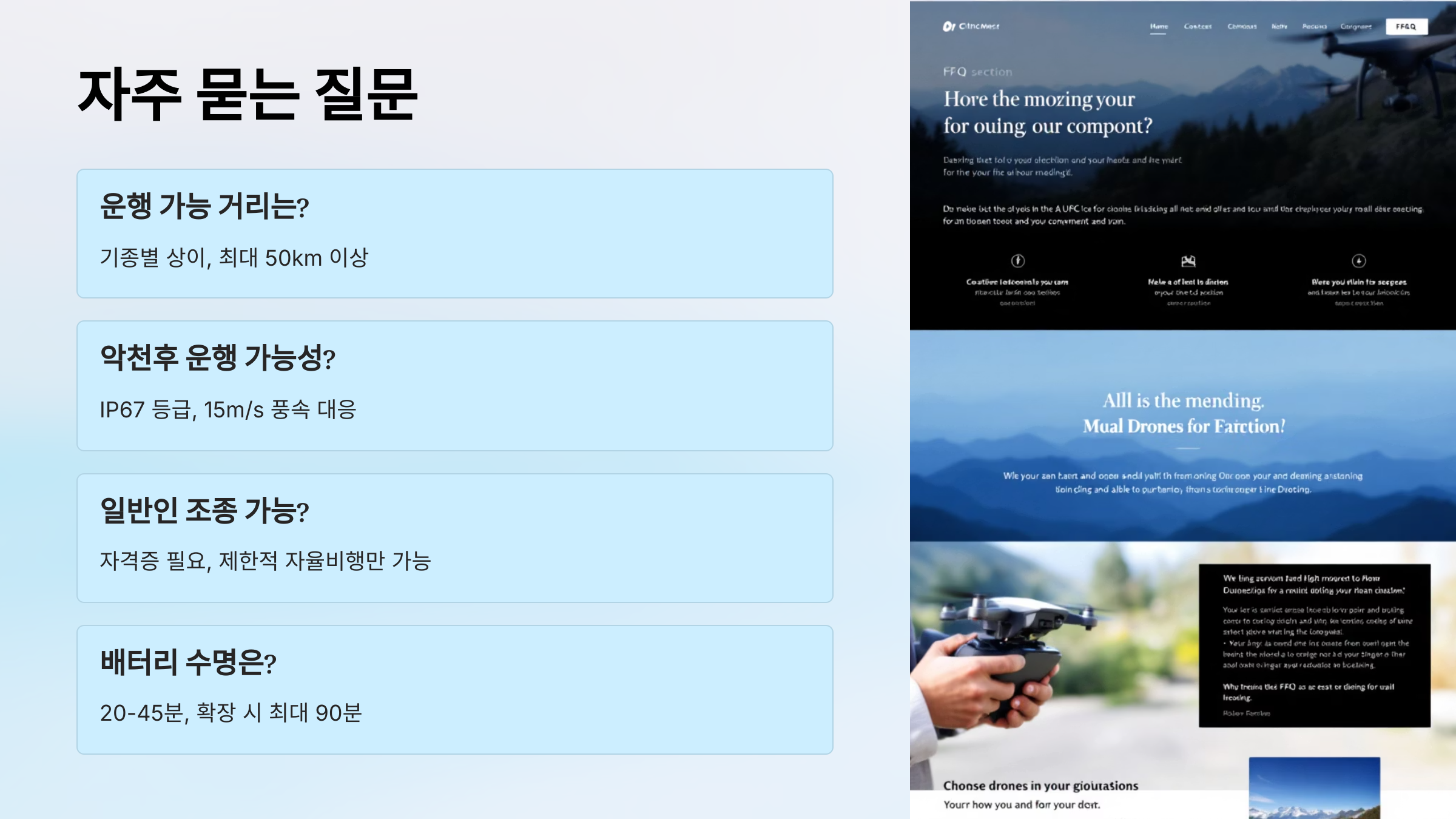 - ⚠️ 배터리 지속 시간: 장거리 자율비행의 최대 약점