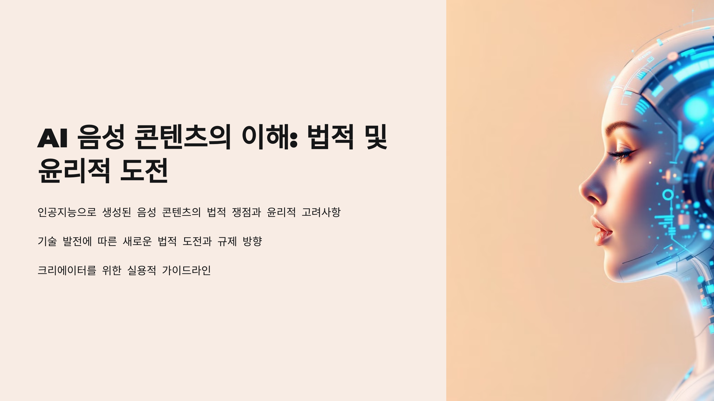 내가 느끼기엔, 이건 법과 기술이 아직 완전히 따라오지 못한 회색지대 같아요. 그래서 오늘은 AI 음성 콘텐츠의 저작권이 누구에게 있는지, 음성 클론 기술이 인격권과 어떻게 연결되는지까지 함께 정리해드릴게요!🤖🎙️
