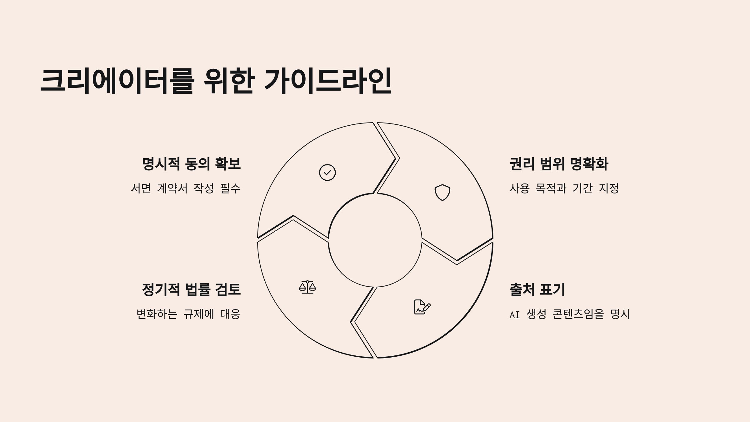 이처럼 AI 콘텐츠의 법적 지위는 명확하지 않지만, 계약과 사전 동의 여부가 가장 큰 핵심이 되는 건 확실해요.