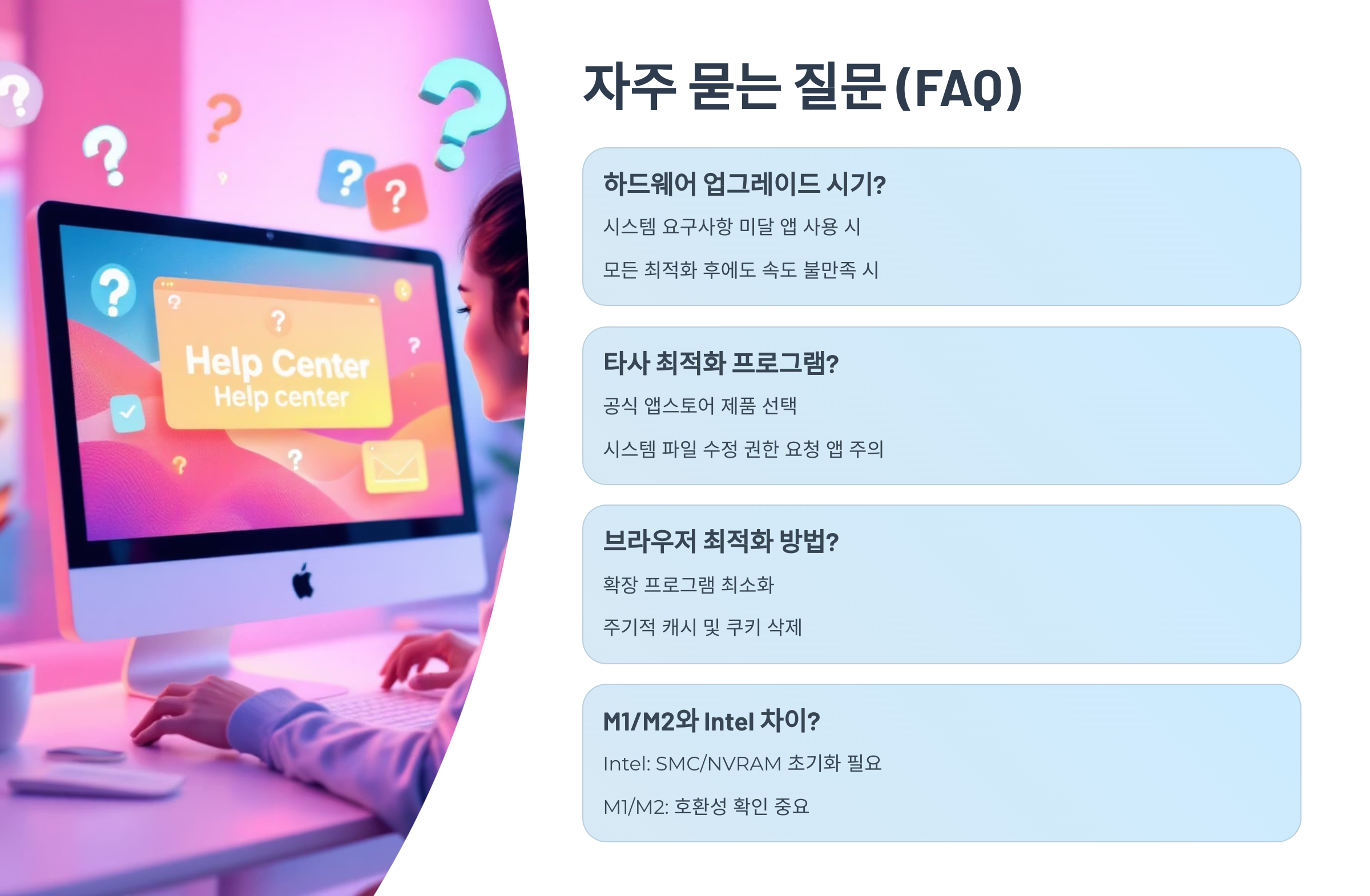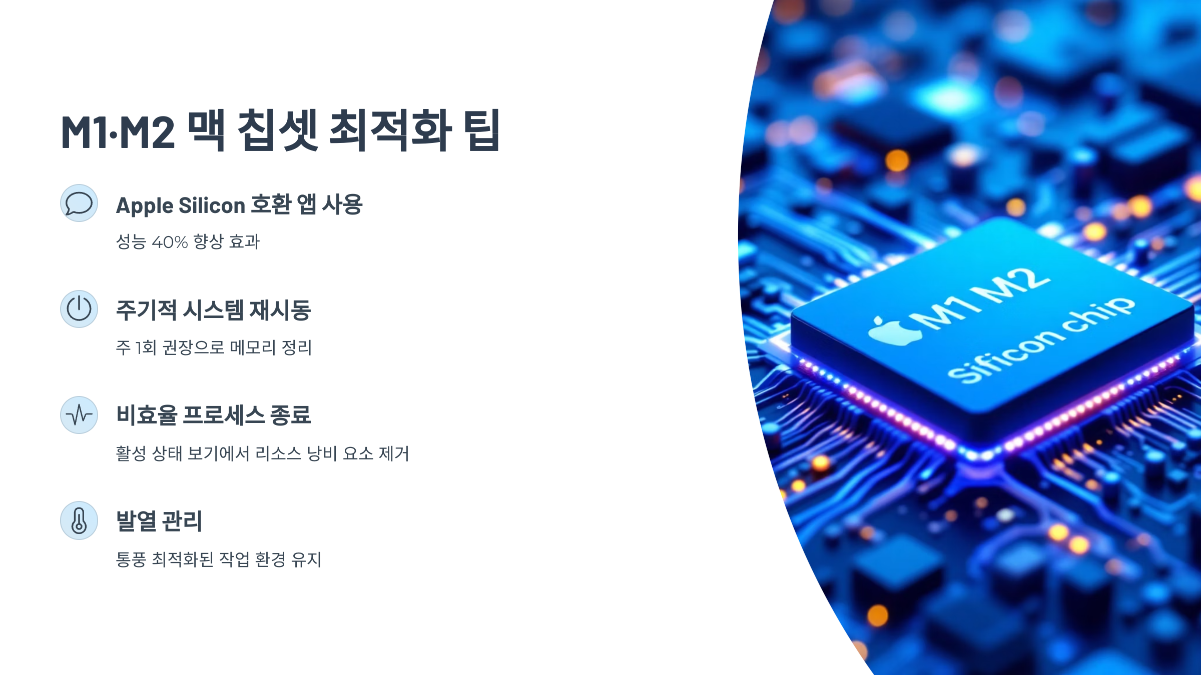 이제 원인을 파악했으니, 본격적으로 Mac 성능을 최적화하는 구체적인 방법들을 M1·M2 사용자 중심으로 안내드릴게요.